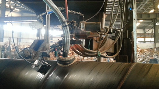 螺旋管在我國(guó)主要應(yīng)用在石油工業(yè)和管道建設(shè)事業(yè)中。在高壓、高強(qiáng)度、長(zhǎng)距離輸送等方面對(duì)螺旋鋼管的質(zhì)量要求越來越高。然而螺旋鋼管在生產(chǎn)過程中,由于鋼板的橫向竄動(dòng)、成型角的調(diào)整、導(dǎo)電嘴的磨損等諸多原因,時(shí)常會(huì)出現(xiàn)焊偏現(xiàn)象。如何采用一種行之有效的辦法,實(shí)現(xiàn)螺旋鋼管內(nèi)外焊縫的自動(dòng)跟蹤,徹底解決內(nèi)外焊焊偏問題,一直是各螺旋鋼管廠家技術(shù)人員研究的重要課題。