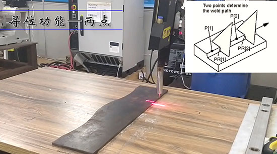 測量平面焊縫的兩個點,計算焊縫的偏移,將偏差補償到示教點上。