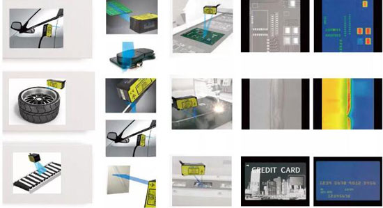 微小零件的位置識別;傳送帶上有無零件的監測;材料重疊和覆蓋的探測;機械手位置(工具中心位置)的控制;器件狀態檢測;器件位置的探測(通過小孔);液位的監測;厚度的測量;振動分析;碰撞試驗測量;汽車相關試驗等。