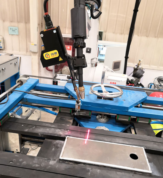 創(chuàng)想機(jī)器人焊縫跟蹤器原理是, 固定激光視覺傳感器在焊槍正前方, 通過直接觀察焊槍與焊縫中心線的位置關(guān)系, 提取偏差信息, 輸出糾偏控制電壓。