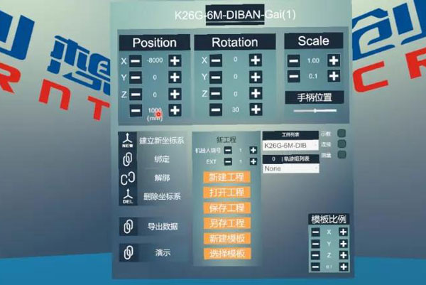 界面空間好似進入一個模擬仿真的房間,操作面板位于中間位置,可以調節工件在空間中的位置、調整工件或坐標系的角度旋轉、調節放大比例(對于工件大小方便觀察可以進行放大縮小)。