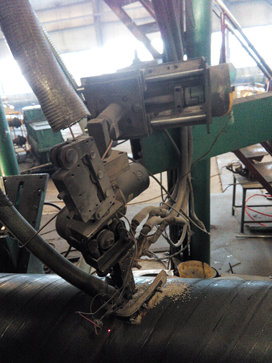 板材經過清銑,遞送,板邊預彎等工藝后,先進性內焊,使管子成形,然后進行外焊加固焊道,內外焊合稱為成型工藝。焊接工人一般負責事項比較多。包括:焊道位置調整,擺橋,量管徑,調整焊接電流電壓,如果機組運行不穩定,現場工人往往會手忙腳亂。而且人工成本高,易疲勞,用工量大的問題一直存在。這個時候,一臺能代替人工解決螺旋管焊接難題的自動化設備是您的不二之選。