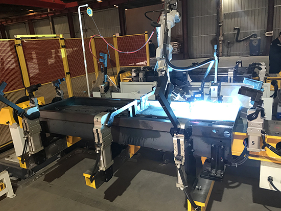 由于下料、工人組對和工裝的誤差,在焊接時沒有辦法解決,所以激光焊縫跟蹤系統是他們必不可少的選擇。和汽車車廂板不同的是,貨車車廂板批量性比較好,所以不需要定制化開發。![]()