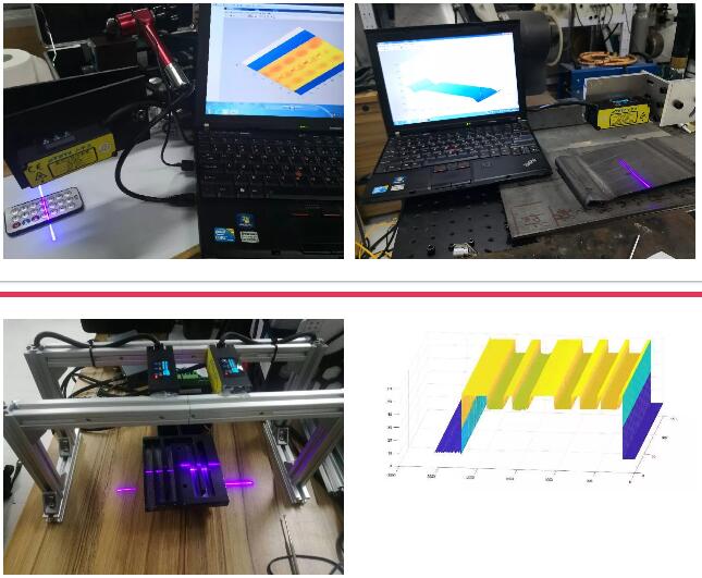 采用柱面物鏡將激光光束擴大為條狀,激光在目標物上產生漫射,反射光在CMOS上成像,通過檢查位置、形狀的變化來測量位移和形狀。