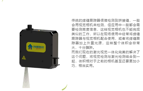 傳統(tǒng)的焊縫跟蹤器很難檢測到拼接縫,一般會用視覺相機來檢測,但應(yīng)用中一般都會需要檢測高度信息,這樣視覺相機也不能完成類似的工作,所以在現(xiàn)場使用中經(jīng)常將焊縫跟蹤器與視覺相機配合使用,或者將焊縫跟蹤器加上外置光源,這樣整個體積會非常大,十分臃腫。